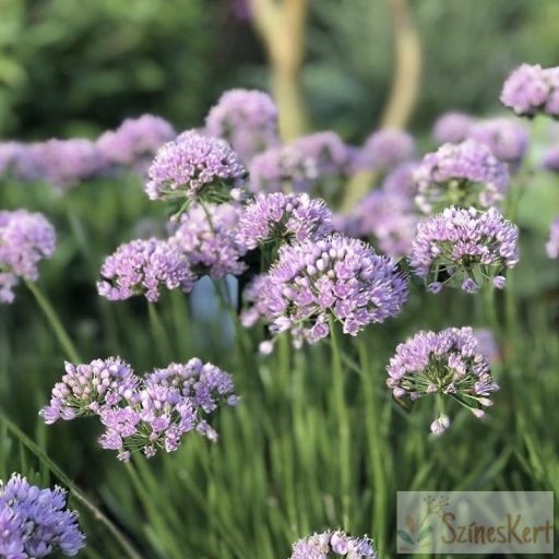 Allium 'In Orbit' - díszhagyma virágzata rózsaszínű pom-pom-szerű gömbökből áll, melyet a méhek, pillangók és egyéb rovarok tömege látogat.