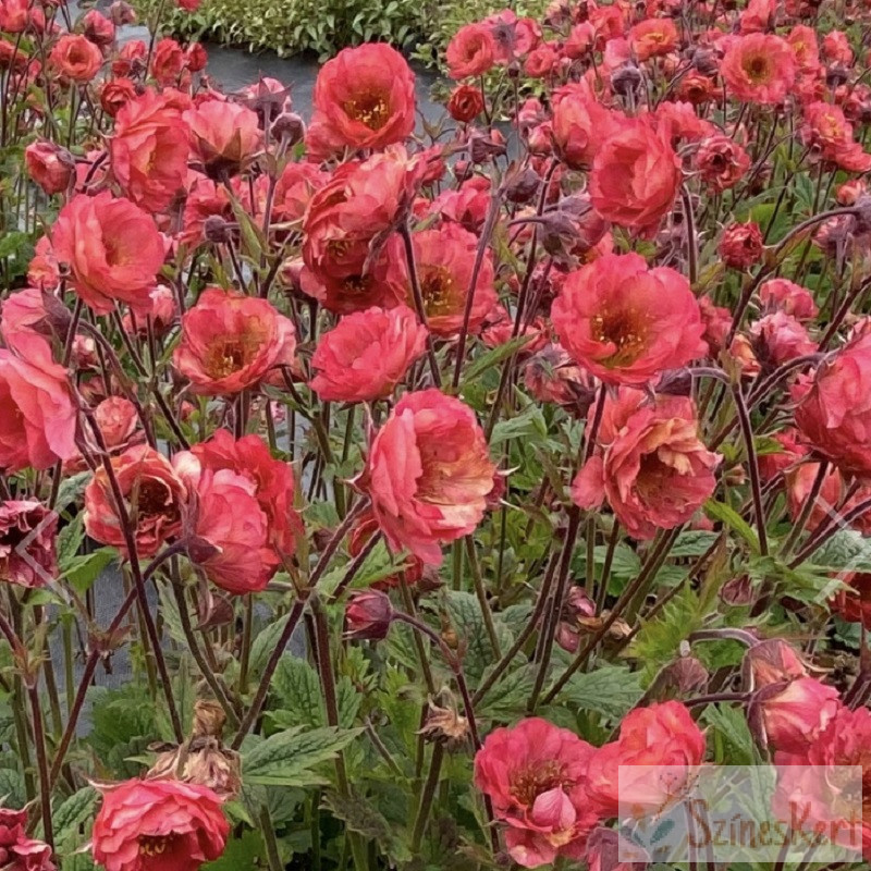 Geum 'Tempo Coral' - gyömbérgyökér egy szépen bokrosodó, félig örökzöld évelő. Gyönyörű korall színű virága van.