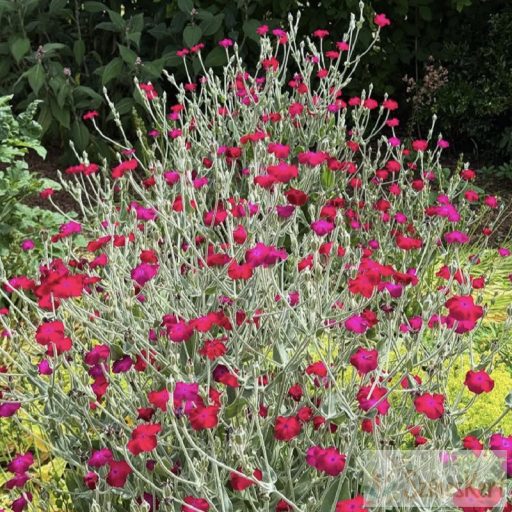 Lychnis coronaria - bársonyos kakukkszegfű egy fukszia színben pompázó hosszan virágzó évelővirág.