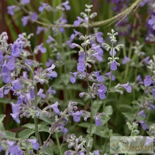 Nepeta x faassenii 'Six Hills Giant'– kerti macskamenta gyorsan fejlődő, finoman aromás illatú, télálló évelő. Kifejezetten jó télálló és igen magas növekedésű fajta, ahogyan az angol fajtaneve is mutatja. Virágzati száraival laza bokrot alkot, magjai sterilek, nem fogja újravetni önmagát. Tavasszal érdemes erősen visszavágni. Elterülő, bokros habitusú, 70 cm magas lesz. A levele iIlatos, szürkészöld, finom, csipkeszerű. Virágai hosszú füzérvirágzatban nyílnak, kékeslila színűek. Napos, félárnyékos helyet kedvel. Nagyon jól tűri a szárazságot. A kötött, nehéz és vizes talajokat nem kedveli, csak a jó vízáteresztésű talajokban fejlődik szépen. Felhasználható sziklakertbe, szegélynek, rózsák mellé. A Nepeták tágtűrésű fajok, elsődlegesen a szárazabb, napos vagy félárnyékos helyeket kedvelik. Sokféle talajtípust tolerálnak, lazább homokos vagy kötöttebb talajon is megélnek, nem érzékenyek az erősebb fagyokra sem, jó hidegtűrők. Színskálájuk a kéktől a lilán át egészen a fehérig terjed azok minden árnyalatával, magasságuk az alacsony terülő fajtáktól a fél métert meghaladó erőteljes növekedésűekig változik. A dísznövények között legtöbbször a kaukázusi macskamenta (N. racemosa), a kerti macskamenta (N. x faassenii) a nagyvirágú macskamenta (N. grandiflora), valamint különböző hibridek szerepelnek. Kora nyártól hosszan virágzó évelők, júliusi visszavágás után azonban másodvirágzásra is lehet számítani nyár végétől kora őszig. Elszáradt lombját tavasszal elég visszavágni kétharmad magasságban, 3-4 évente pedig tőosztással lehet a nagy töveket fiatalítani. Virága vonzza a rovarokat, méhek, lepkék kedvelt növényei. Sokoldalúan felhasználható, sokféle kertstílus attraktív virágai, nagy részük közterületekre is bátran ültetehető. Virágzási idő: VI - IX. Teljes magasság (cm): 70 Lombmagasság (cm): 50 Tőtávolság (cm): 40 Darab / m2: 6