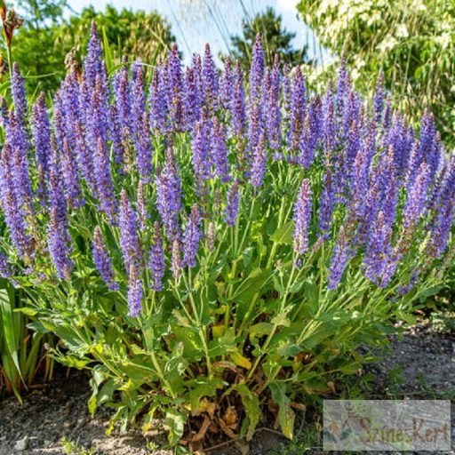 Salvia nemorosa 'Blauhügel' - ligeti zsálya szárazságtűrő évelő, kék -búzavirágszínű virágai vannak; nyár elejétől őszig virágzik.