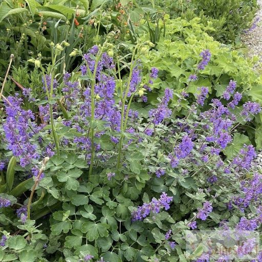 Nepeta racemosa – kaukázusi macskamenta gyorsan fejlődő, finoman aromás illatú, télálló évelő. Elterülő, alacsonyabb fajta, jól fedi a talajt. Közterületekre kifejezetten jó, kipróbált évelő. Tavasszal érdemes erősen visszavágni. Elterülő, bokros habitusú, 30 cm magas lesz. A levele iIlatos, szürkészöld, finom, csipkeszerű. Virágai füzérvirágzatban nyílnak, kékeslila színűek. Napos, félárnyékos helyet kedvel. Nagyon jól tűri a szárazságot. A kötött, nehéz és vizes talajokat nem kedveli, csak a jó vízáteresztésű talajokban fejlődik szépen. Felhasználható sziklakertbe, szegélynek, rózsák mellé. A Nepeták tágtűrésű fajok, elsődlegesen a szárazabb, napos vagy félárnyékos helyeket kedvelik. Sokféle talajtípust tolerálnak, lazább homokos vagy kötöttebb talajon is megélnek, nem érzékenyek az erősebb fagyokra sem, jó hidegtűrők. Színskálájuk a kéktől a lilán át egészen a fehérig terjed azok minden árnyalatával, magasságuk az alacsony terülő fajtáktól a fél métert meghaladó erőteljes növekedésűekig változik. A dísznövények között legtöbbször a kaukázusi macskamenta (N. racemosa), a kerti macskamenta (N. x faassenii) a nagyvirágú macskamenta (N. grandiflora), valamint különböző hibridek szerepelnek. Kora nyártól hosszan virágzó évelők, júliusi visszavágás után azonban másodvirágzásra is lehet számítani nyár végétől kora őszig. Elszáradt lombját tavasszal elég visszavágni kétharmad magasságban, 3-4 évente pedig tőosztással lehet a nagy töveket fiatalítani. Virága vonzza a rovarokat, méhek, lepkék kedvelt növényei. Sokoldalúan felhasználható, sokféle kertstílus attraktív virágai, nagy részük közterületekre is bátran ültetehető. Virágzási idő: VI - IX. Teljes magasság (cm): 30 Lombmagasság (cm): 25 Tőtávolság (cm): 40 Darab / m2: 6