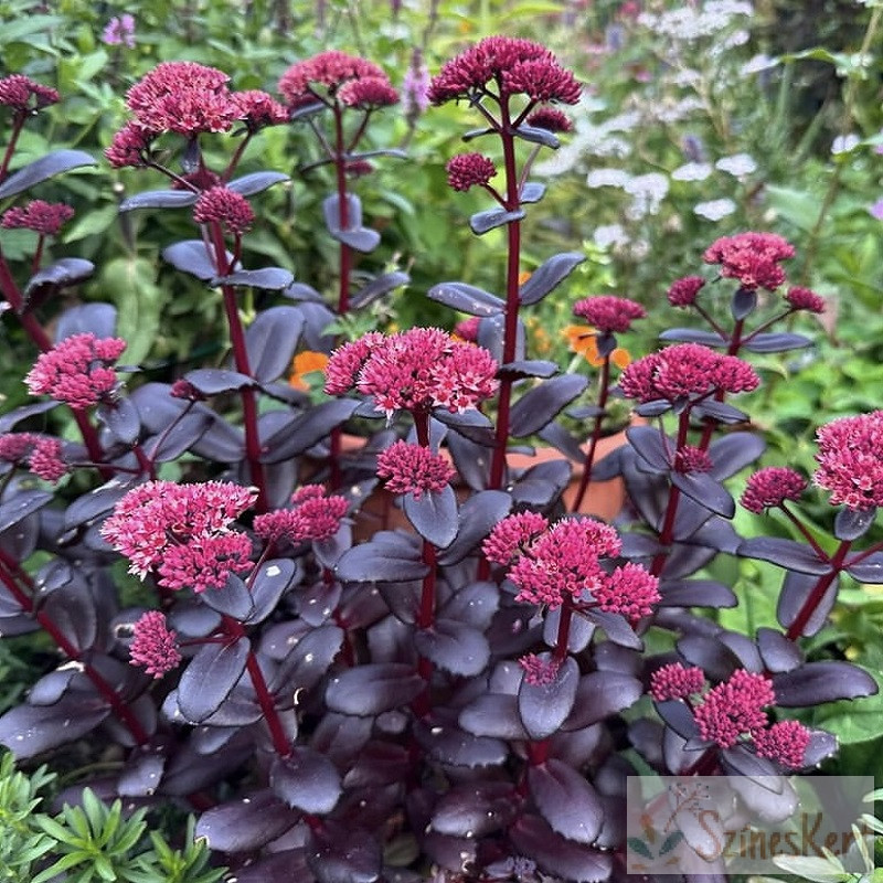 Sedum telephium 'Touchdown Teak' - kárpáti varjúháj egy erős, vaskos, felálló szárú, bokros növekedésű évelővirág.